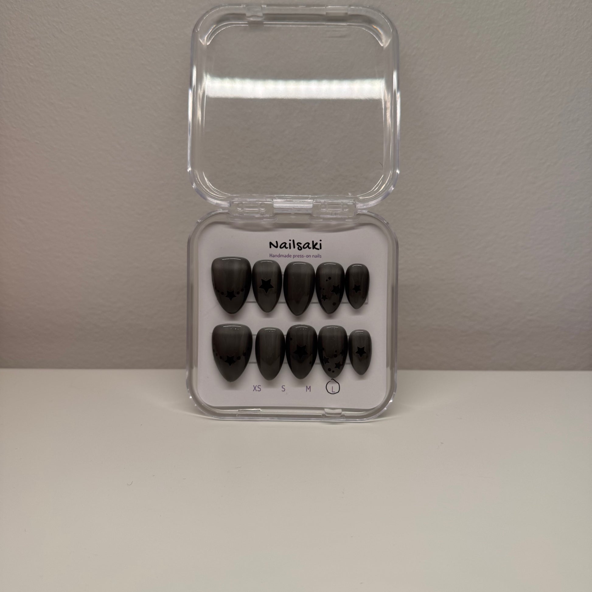 Starry Night is a little bit edgy, a little bit mysterious, and totally stunning. The deep see-through black base with black star accents gives off a celestial, moody vibe. These press-ons are made to last, comfortable to wear, and can be reused for multiple occasions.